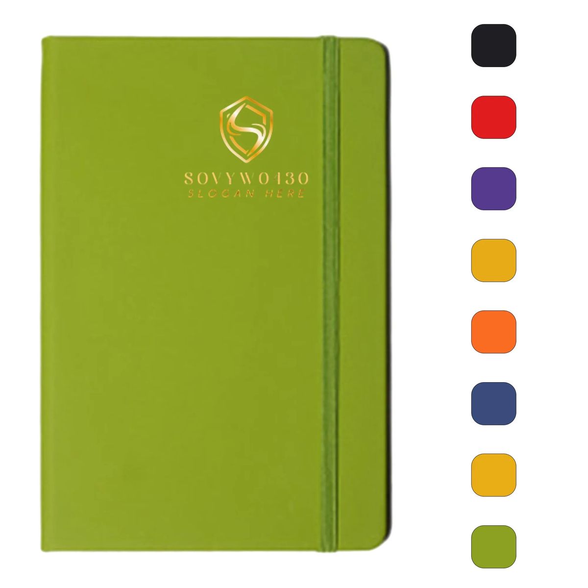 Keep organized in your thoughts when you use this A6 notebook to write them down. This notebook features 80 sheets of paper, a hardcover exterior, and an elastic closure. The cover of this journal is made out of a premium polyurethane leather material that is very durable and comfortable to the touch. Several different colors are available as options. Orders of 1,000 pieces or greater are eligible for sea shipping. Write your own success story when you choose to customize this hardcover notebook with your business's logo.